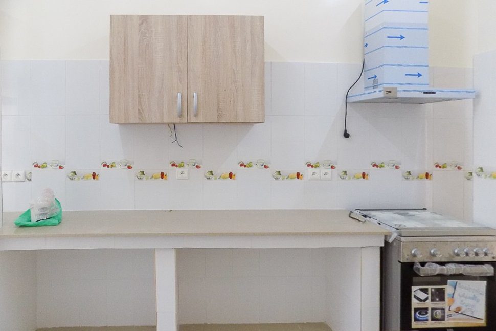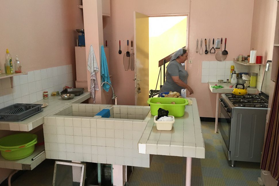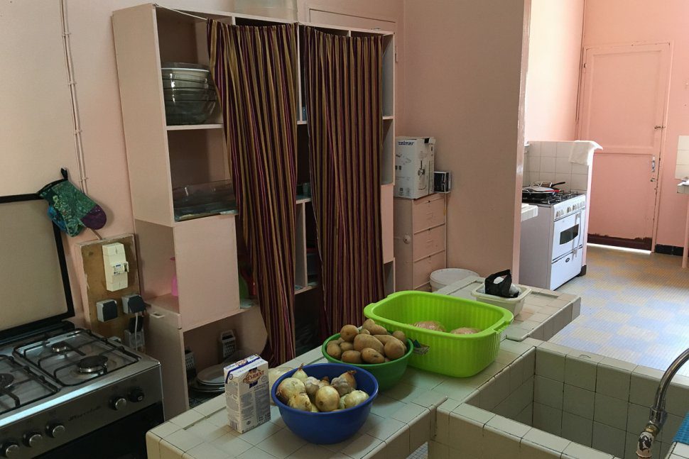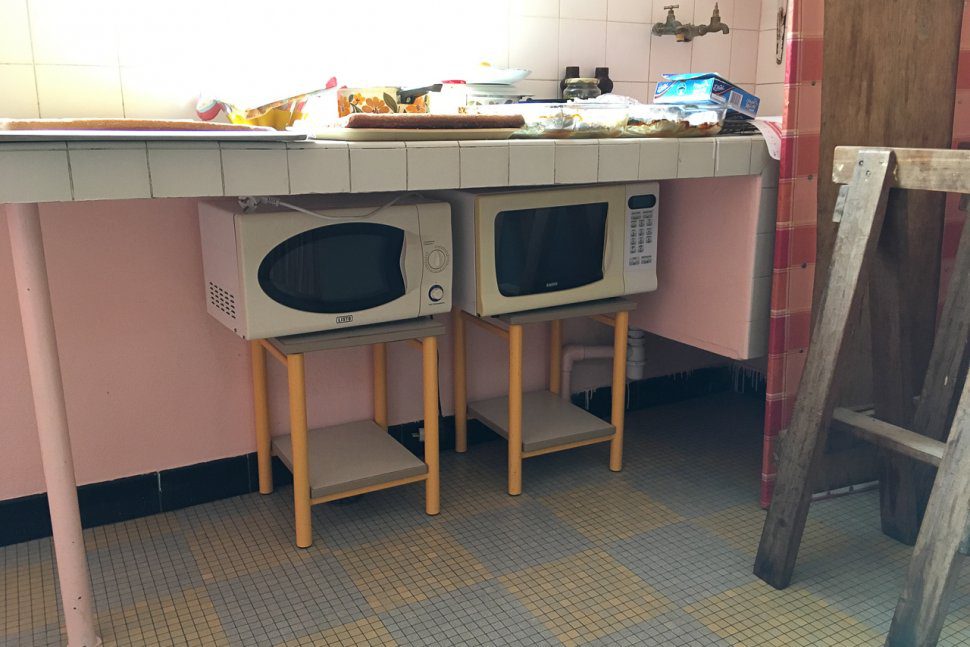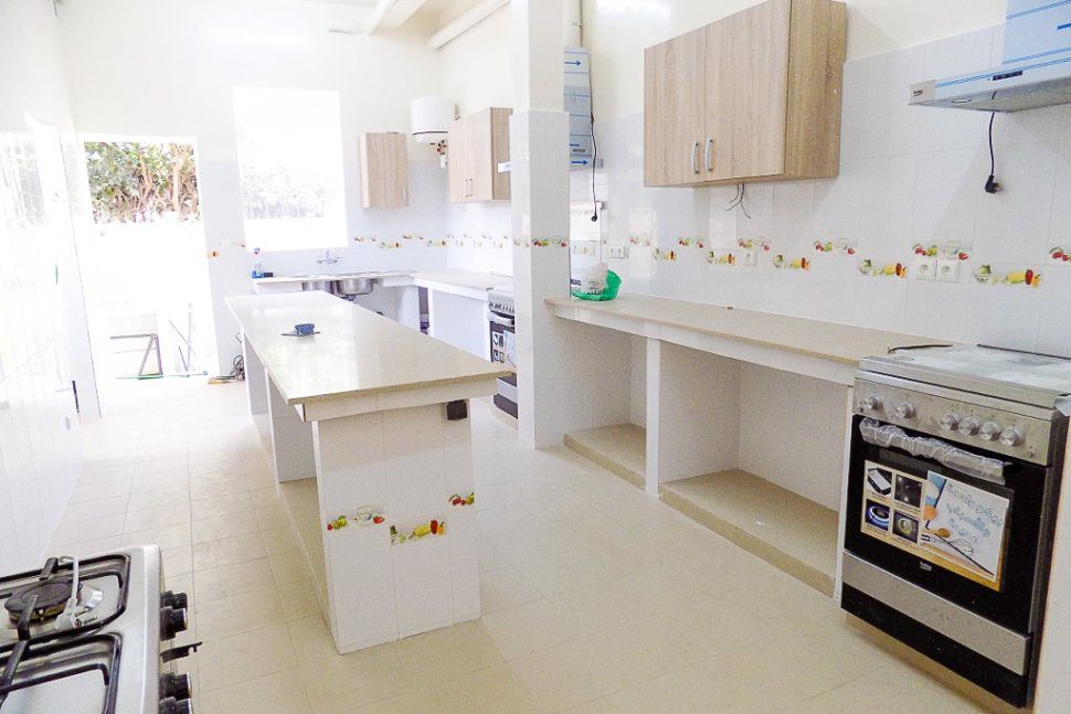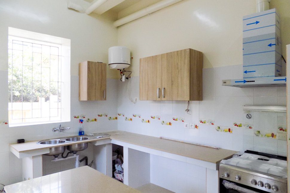 Całe pomieszczenie jest już odmalowane, na ścianach znalazła się nowa biała glazura, a na podłodze piaskowa terakota. Przy 3 oddzielnych stanowiskach do przygotowywania potraw znalazły się już nowe kuchenki gazowe wraz z piekarnikami, a nad każdą z nich funkcjonalny okap. Nad długimi blatami umieszczonymi wzdłuż pomieszczenia zawisły szafki na kuchenne akcesoria. Pod blatami lada dzień zostaną zamontowane półki na pozostałe przybory kuchenne.