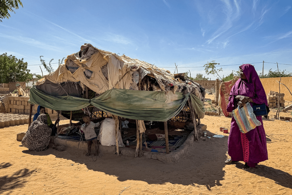 Cała rodzina mieszka pod lichą konstrukcją z patyków przykrytych starymi matami i kawałkami materiałów. Chroni przed słońcem, ale kiedy spadnie deszcz, wszystko w środku będzie pływało. Żeby nie spać na piachu, rozkładają na nim maty. Jedną przyniosła s. Iram z ośrodka dożywiania.
