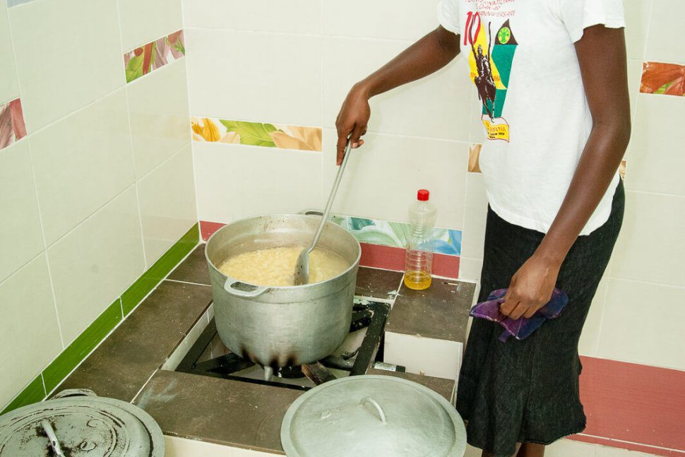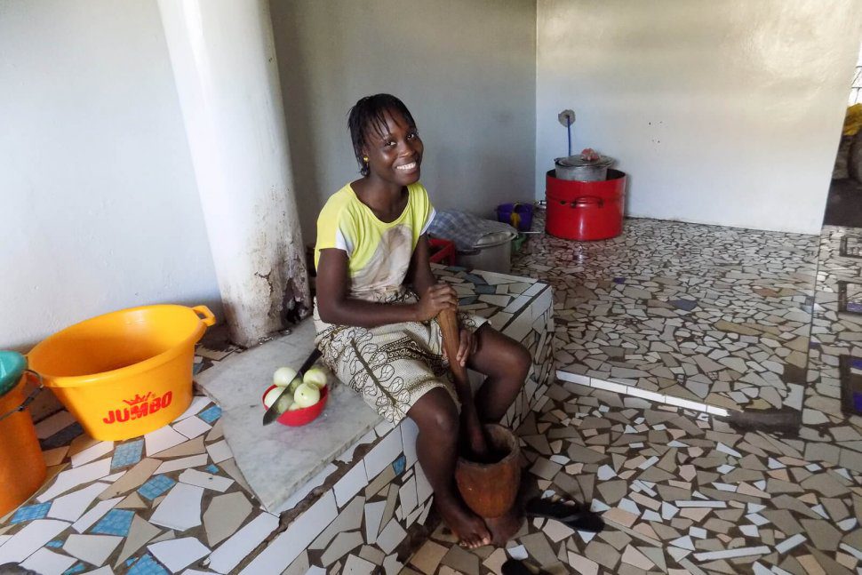 Kuchnia w internacie wyremontowana przez siostrę Ewę (organizacja i nadzór) i naszą Dobrą Fabrykę (finanse), wygląda zupełnie inaczej niż stare pomieszczenie, w którym dziewczyny były zmuszone dotychczas gotować sobie obiady na chałupniczej kuchence skleconej ze starej beczki na paliwo i palnika gazowego. A przecież nie będzie sensownej nauki, jeśli nie będzie śniadania i obiadu…