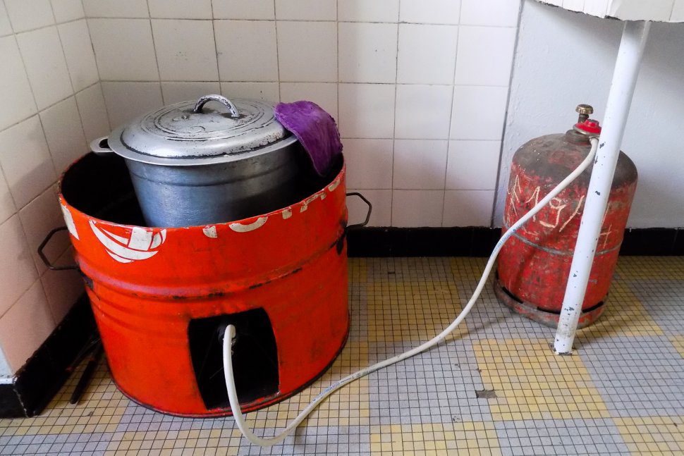 W nowej kuchni znalazło się miejsce na dwa solidne palniki gazowe, (dziewcząt jest 28 na każdym roku i dla wszystkich musi starczyć), a paliwo do nich jest dostarczane z zewnątrz budynku z porządnie zabezpieczonych dużych technicznych butli.