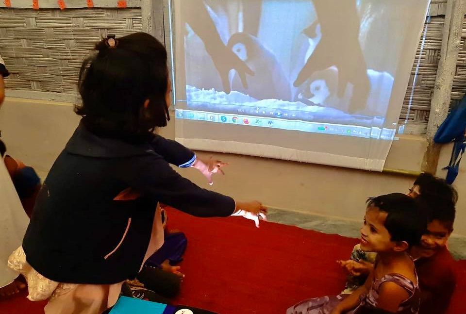 W pierwszej chwili chyba dobrze je wystraszyliśmy, kolejną reakcją była próba przedostania się na drugą stronę ekranu. Gdy w końcu, po chwili wszystkie dzieciaki z naszej świetlicy w Bangladeszu zrozumiały, na czym polega kino, radość była nie do opisania!