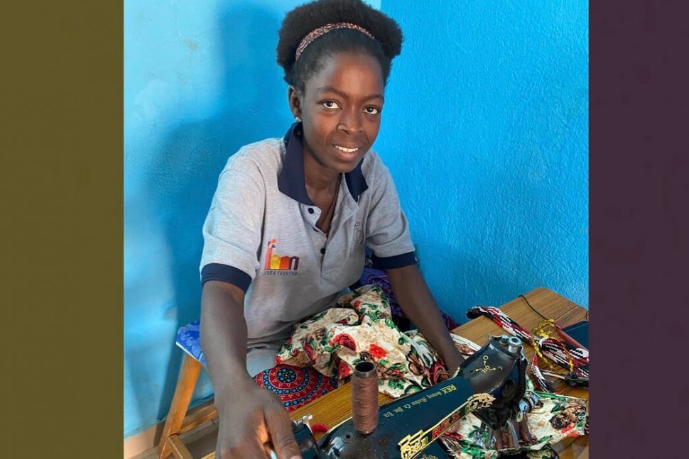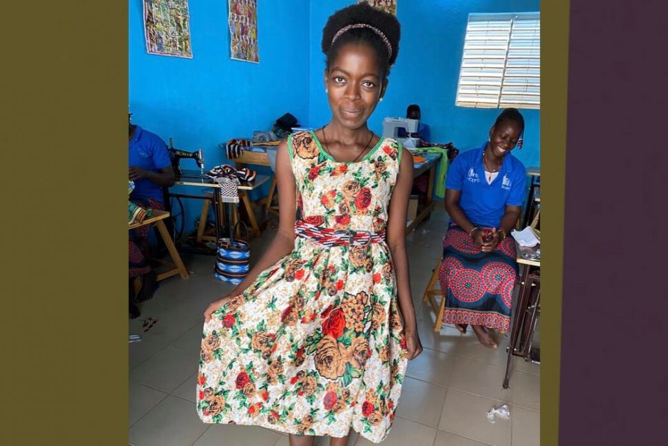 Ze zdjęcia uśmiecha się do Was Catherine, 25-letnia studentka historii i równocześnie kursantka naszej szkoły krawieckiej w Gourcy.