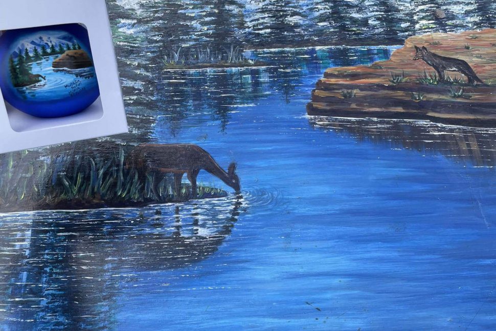 Murtaza, uchodźca z Afganistanu, był tak wdzięczny Katerinie i Nikosowi za gościnę w Home for All, że jeden z restauracyjnych stolików zamienił w piękny obraz przedstawiający zimowy pejzaż. Chcemy, żebyście w tym roku zabrali to dzieło sztuki do siebie, na Święta!