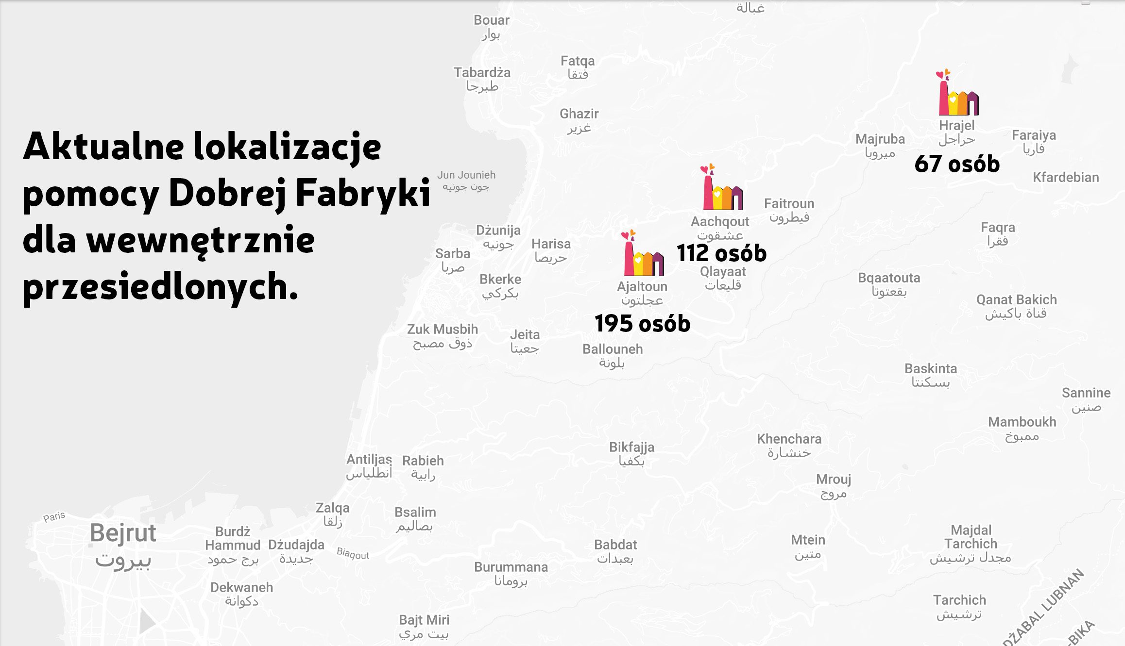 Niesiemy bezpośrednią pomoc rodzinom, które schroniły się w szkołach w prowincji Mount Lebanon, dostarczając pakiety żywnościowe, materiały opatrunkowe oraz najpotrzebniejsze artykuły.