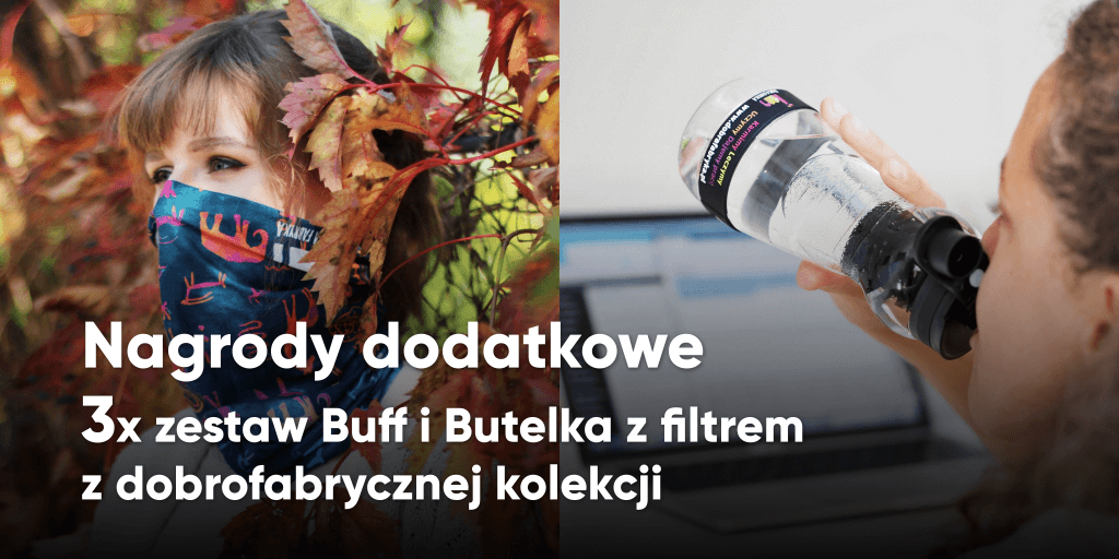 Dodatkowo wyróżnimy 3 inne zgłoszenia konkursowe, które nagrodzimy dobrofabrycznymi zestawami – Buffem i Butelką z filtrem o łącznej wartości 164 zł!