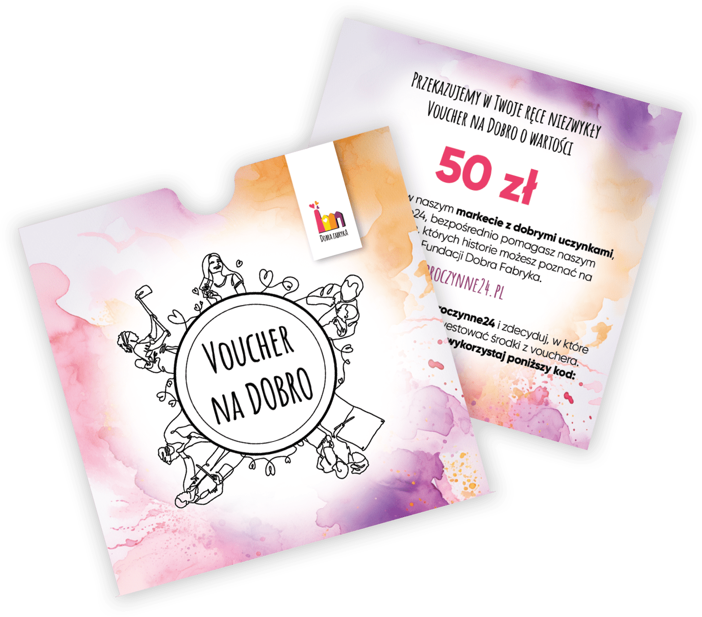 👉 100% przekazanej poprzez Voucher darowizny zostanie wykorzystane na pomoc podopiecznym Fundacji Dobra Fabryka.