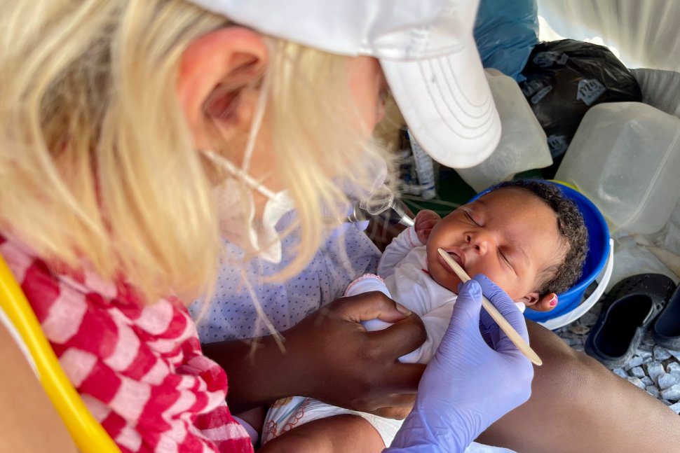 “I have travelled all over the world with my artworks, organizing exhibitions in the United States and in many European capitals. I also visited Krakow once. To where would I like to return? Most of all to Nigeria, to my home, but it is impossible,” he explains, completely resigned. He invites us to sit in front of the tent where he lives with his wife and a-few-month-old baby. When Ola, the doctor joining us on our mission in the camp, examines the child, John tries to host us by organising a few plastic chairs and a stool. He hurriedly tidies up a pile of various items, some of them broken and useless at first glance, but that’s all they have. They have been collecting them for the past months. “During the winter everything was lacking here. With difficulty we managed to find some wooden pallets and made them into a floor in the tent so that we would not have to sleep in the huge puddle which formed in the middle of the tent every time it rained,” he explains, trying to clarify at the same time why there is a pile of all sorts of objects in front of his tent: these might also be of use in a difficult moment.