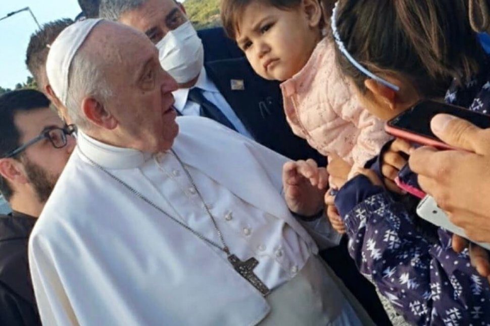 In October, we found an empty field where her tent had stood. All the refugees were moved to more comfortable containers in a different part of the camp. It was this part of Moria 2.0 that Pope Francis saw on Sunday. Here he met with the authorities and a select delegation of refugees. Volunteers and organisations that provide daily relief to the camp’s residents – providing basic assistance, supplementing inadequate camp rations, providing medicines, warm blankets and clothing – were not allowed through.