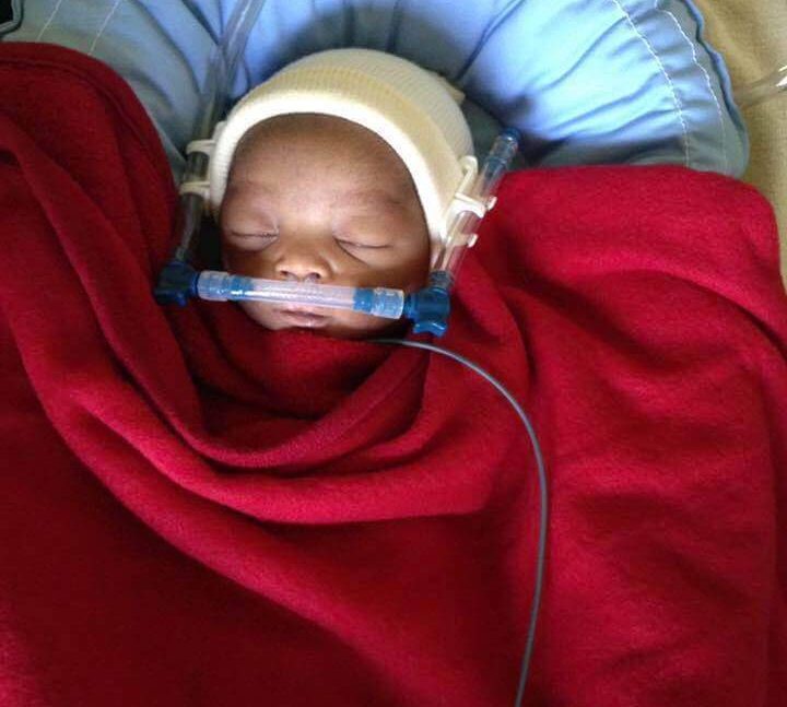 This is little Blaise. The CPAP machine – purchased thanks to your support – attached to his nose will help his respiratory tract develop properly, while the baby warmer is able to provide optimal temperature for a premature baby like him. Blaise will live, all thanks to you!