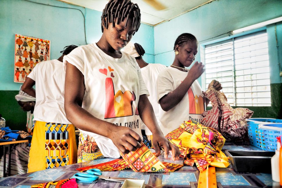 For those who are unable to work physically in the fields, we have rented a room and purchased sewing machines. 47 women are learning the craft from the best tailors of Wagadugu, the country’s capital, whom we bring in for classes at our new atelier once a week. For these women, the three-year course is a dream come true, and a possibility to grab a job opportunity on the labor market.