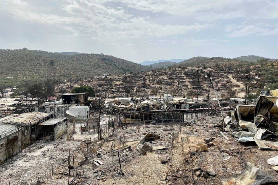 Un instant plus tôt, nous étions dans les cendres de la Moria. L’ampleur de la destruction est terrifiante. La conscience que n’étaient pas du camp Ce qui est encore plus terrifiant c’est que le camp n’est pas les murs mais les gens. Le 8 septembre, 12 000 habitants de la Moria ont de nouveau dû fuir le danger, ils ont tout perdu une fois de plus.