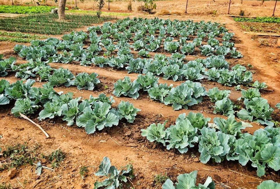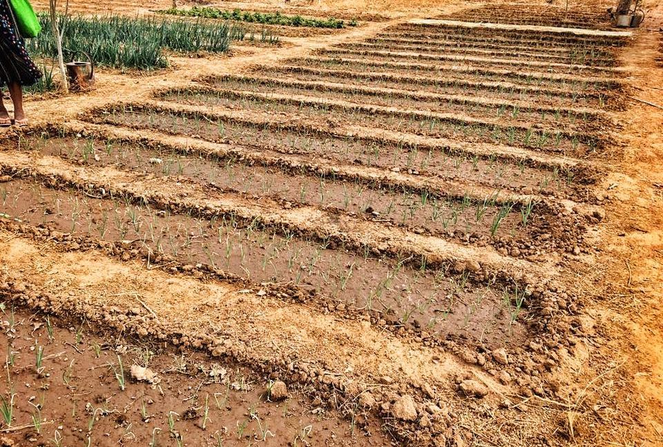 Sur le champ d’à côté, que nous avions mis à la disposition de la population locale deux ans auparavant, on cultive notamment de la laittue, des choux, des haricots, des carottes, des oignons, des pommes de terre, des aubergines, des courgettes et plein d’autres légumes nourrissantes.