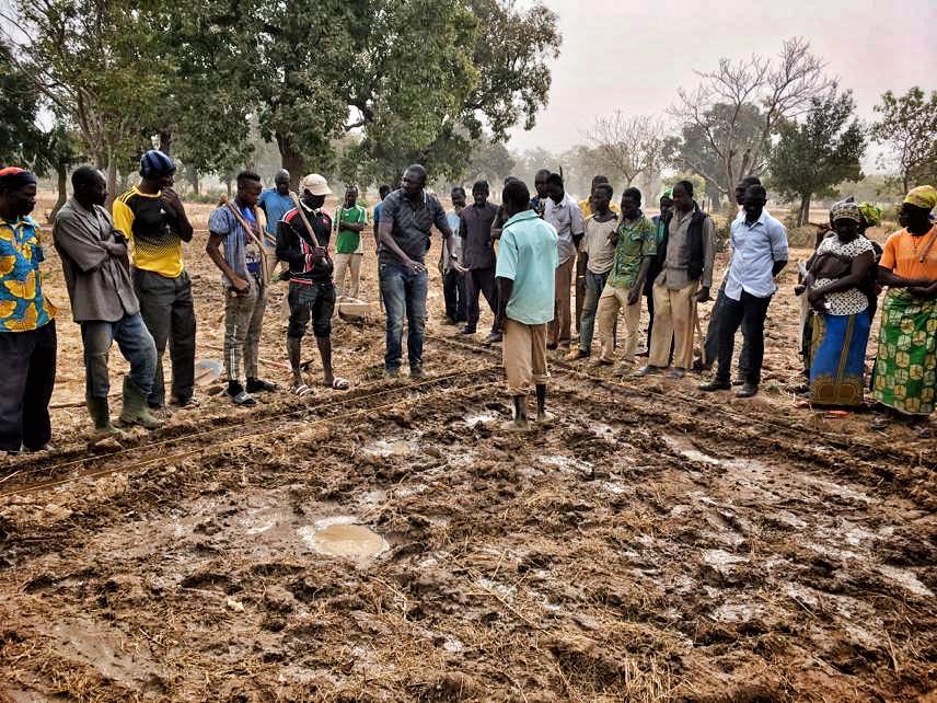 Il y a quelques jours, nous avons organisé un stage consacré à l’irrigation des champs à l’attention de plusieurs dizaines d’apprentis-agriculteurs locaux à qui avons attribué 38 parcelles de terre cultivable. En plus, nous avons aménagé deux aires de compostage et un verger. Nous prévoyons d’y planter des bananiers, des papayers et des manguiers. En participant au stage, nos apprentis-agriculteurs ont appris comment préparer le sol, comment prendre soin de panneaux solaires qui alimentent les pompes et comment gérer rationnellement leurs réserves d’eau.