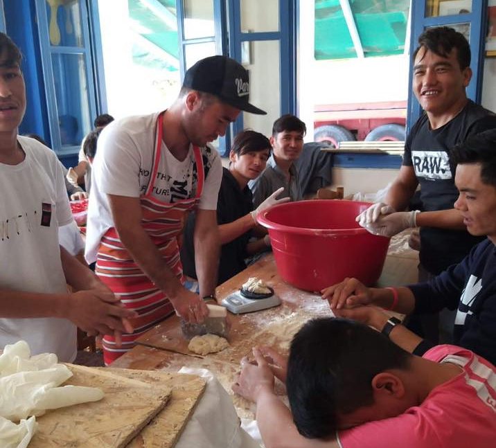 Actuellement, c’est Julio, un chef espagnol, qui prend les commandes de « La Maison pour tous ». Il apprend à nos protégés comment préparer des délicieux calzone. Tout le monde profite du moment. Nos ados sont heureux d’apprendre de nouvelles choses et très fiers de pouvoir offrir les fruits de leur travail aux orphelins de la section « A » du camp de Moria !