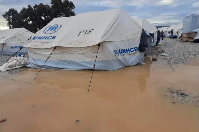 Les réfugiés de l’île grecque de Lesbos perdent à nouveau leurs abris de fortune. Cette fois, pas par le feu, mais par le vent et l’eau qui renversent et inondent notoirement leurs tentes et tout ce qui s’y trouve. Garder les gens dans cet endroit pendant les mois d’hiver est devenu une torture inhumaine.