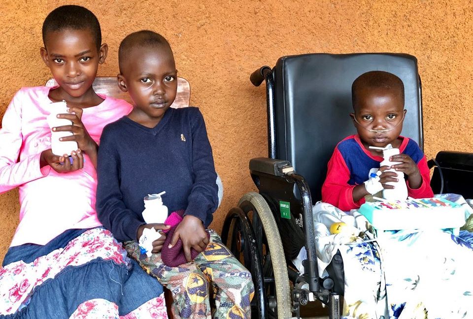 « Les trois enfants sur la photo viennent de différents villages autour de Ntamugenga. Assommés de douleur et de souffrance, pas qu’une seule fois, ils ont regardé la mort en face. Ils ont passé par trop de choses dans la vie. Ils sortent juste du village voisin. Aujourd’hui, nous tournons leur regard vers vous. À un moment donné de leur courte vie, ils se sont retrouvés dans une situation si difficile, que les parents désespérés des trois enfants les ont confiés en toute confiance entre nos mains (et aussi entre vos mains).