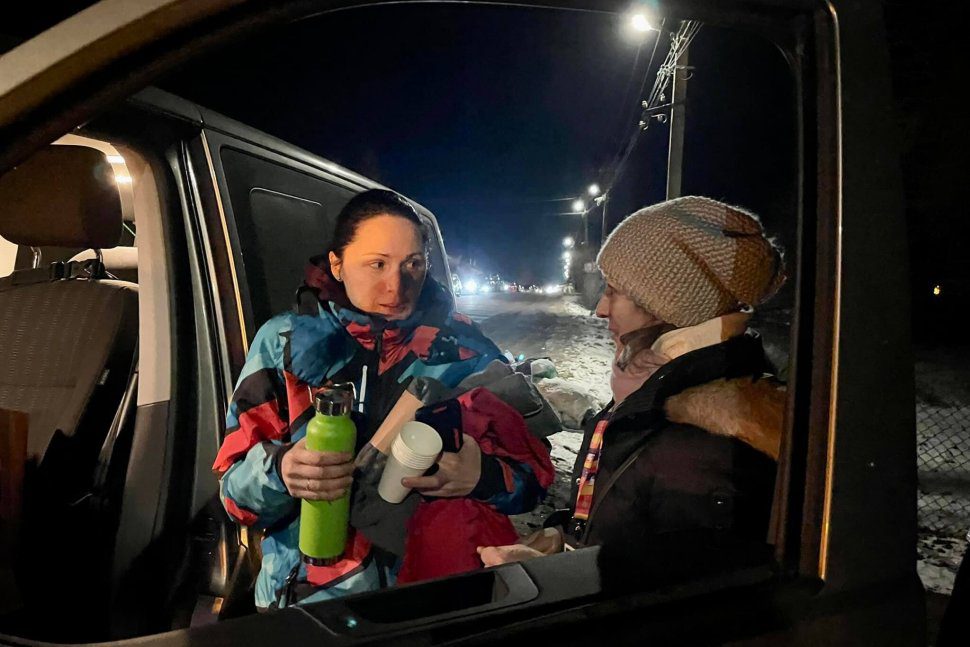 Nous avons passé une autre nuit près de Chyriv en Ukraine. Sur le chemin du poste frontière de Krościenko, nous avons reçu des informations selon lesquelles une mère avec deux enfants était coincée dans sa voiture à 4 km de la frontière du côté ukrainien. La femme était à court de carburant. Tout cela a été utilisé par le système de chauffage, qu’elle a dû utiliser pendant deux jours en attendant de traverser. Elle a également manqué de nourriture. La situation était très difficile.
