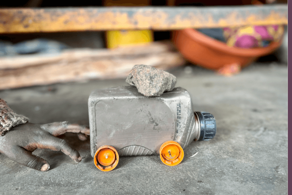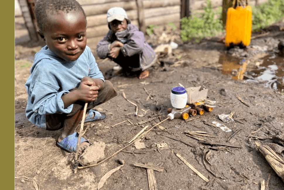 Ils utilisent des pneus usagés, des bouteilles, des pierres et un bout de ficelle comme jouets. Pour Bahati, ils forment un bus scolaire, dans lequel elle aimerait monter un jour en tant qu’élève. Pascal y voit la maison que sa mère et lui ont perdue à cause de la guerre. Il est difficile de comparer les enfances en Europe et en République Démocratique du Congo, mais les rêves des enfants restent les mêmes : sécurité, amour, sourires.