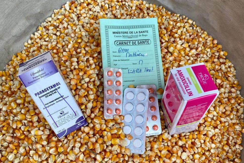 Le quartier est extrêmement pauvre. Les montagnes, le climat rigoureux et la proximité du désert font que de décembre à février, l’Harmatan, qui est un vent du désert qui recouvre tout de poussière rouge, souffle ici. Les gens n’ont pas les moyens d’acheter des médicaments, alors ils viennent à Saint Frydolin (où se trouve la pharmacie) avec des ordonnances d’assistants médicaux (parfois ils parcourent plusieurs kilomètres pour s’y rendre) et obtiennent tout ce dont ils ont besoin ; et le tarif standard est … un bol de maïs, de sorgho ou de grains différents. Cette nourriture est collectée et distribuée à ceux qui n’ont rien à manger pendant la saison sèche. La pharmacie de Saoudé est ouverte 5 jours sur 7 et est ouverte à tous.