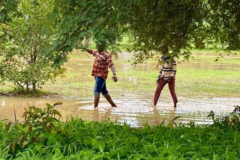 Ce sont des photos d’hier. Il a finalement plu. Nous avons attendu cela longtemps. Une autre sécheresse et un manque de nourriture sont un mélange volatil et désastreux. Dans le jardin, nous avons déjà des piments rouges, du chou Napa, des concombres en fleurs, des épinards, des radis et du maïs. Les tomates poussent également bien et sont sur le point de virer au rouge. Il est remarquable qu’une telle richesse pousse sur une parcelle de terre déserte. Pour les habitants de Gourcy, c’est un remède contre la faim et l’opportunité d’une alimentation équilibrée. Jusqu’à il y a quelques années, tout ce que les villageois espéraient était de réussir à cultiver du mil, qui était semé ici en raison de sa courte saison de croissance. Aujourd’hui, les choses sont vertes et savoureuses.