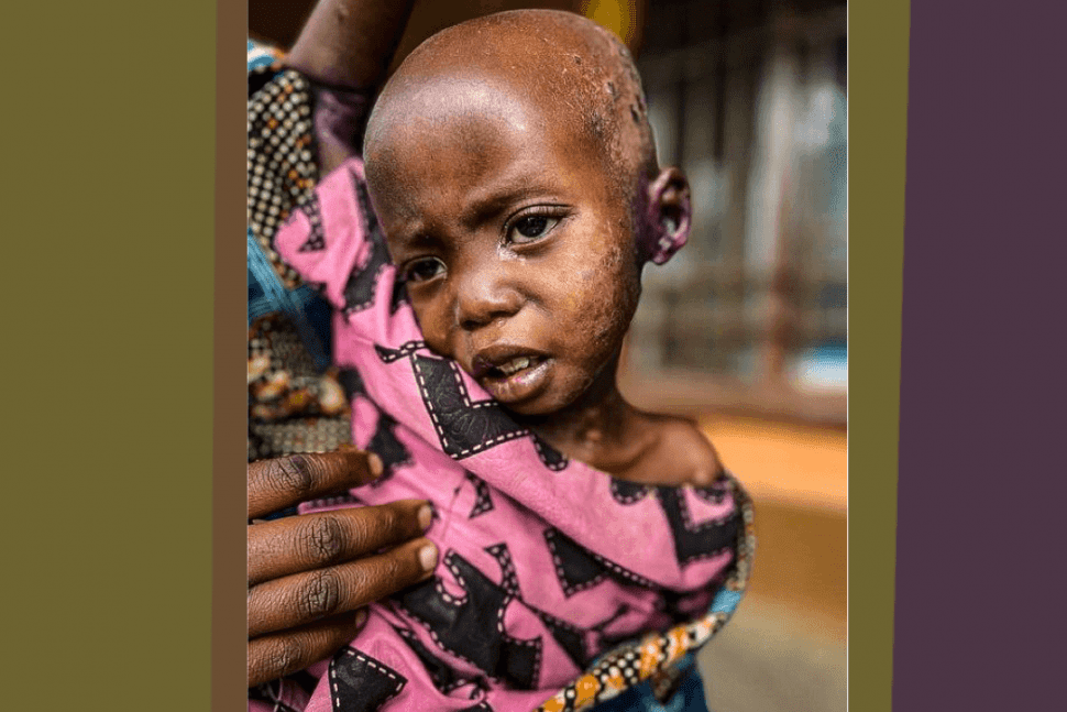 À la dernière minute, ils ont trouvé leur chemin jusqu’à nous ; un hôpital et un centre de nutrition à Ntamugenga, toujours prospère malgré l’occupation rebelle. Les médecins ont évalué l’état de la petite comme grave. L’apathie et l’œdème sont déjà révélateurs de la maladie, mais lorsque des blessures commencent à apparaître sur le corps, c’est déjà très grave.