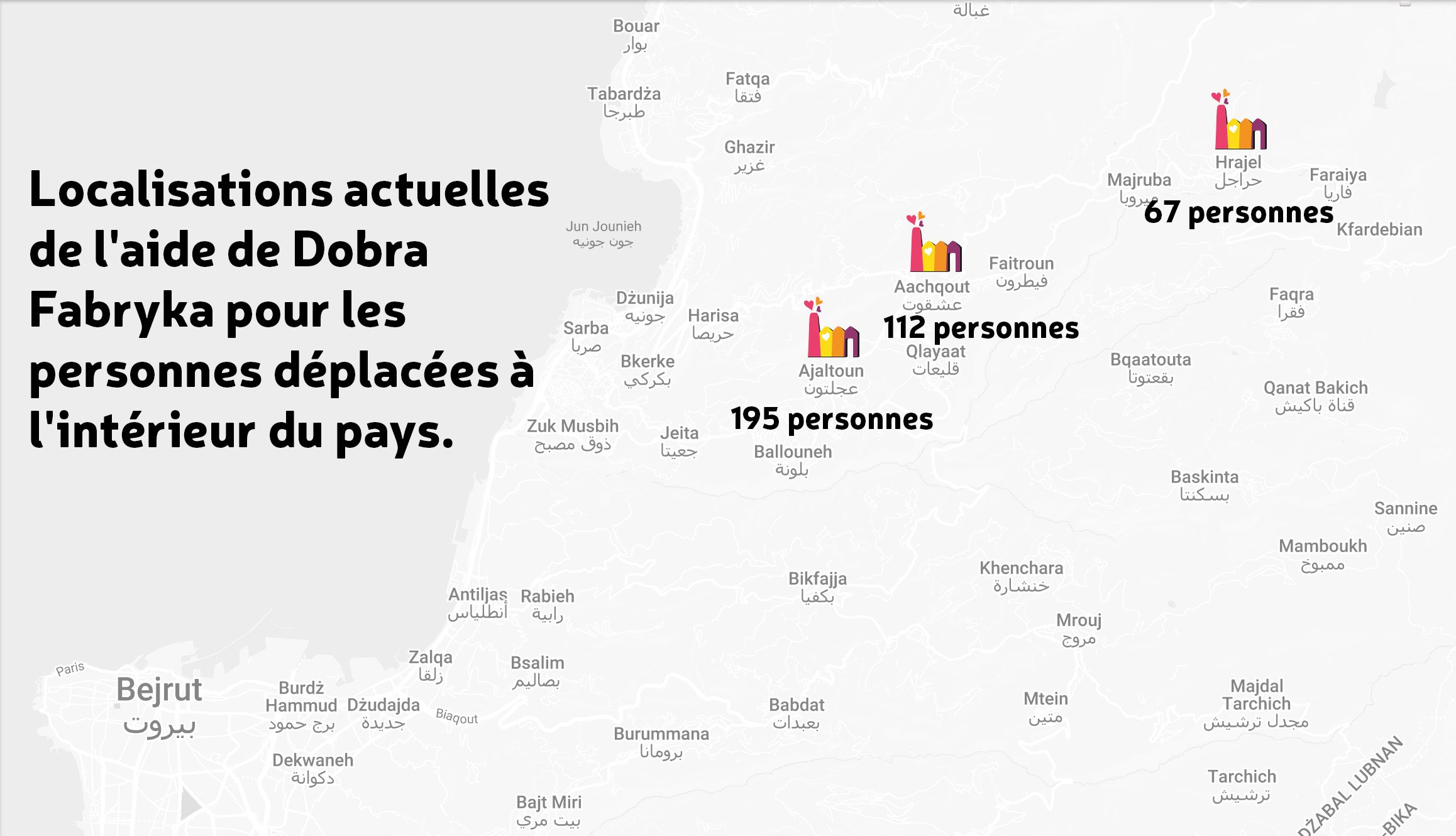 Nous apportons une aide directe aux familles réfugiées dans les écoles de la province du Mont-Liban, en leur fournissant des colis alimentaires, du matériel de pansement et des articles de première nécessité.